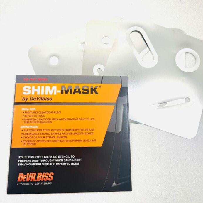 DeVilbiss SHIM-MASK mot rinningar i lacken. Är ett verktyg för att enkelt ta bort rinningar, färgdamm och ojämnheter i lacken på din bil. Detta är en effektiv och patenterad lösning från Devilbiss. Se videon nedan. Används bäst tillsammans med vår lackhyvel.