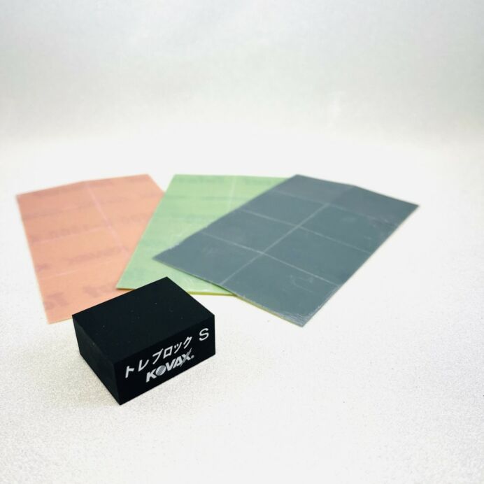 Denna kloss används tillsammans med anpassade slippapper i samma storlek. Det finns att välja mellan K1500, K2000 och K3000. Du kan välja att köpa denna kloss enskilt eller med valfri slippapperuppsättning. Vill du komplettera med slippapper så kan du göra det nedan under tillbehör. Varje slippapper är väldigt små och smidiga. Dom säljs i 1 ark med 8st små självhäftande slippapper på varje ark.Storleken på klossen och slippapper till denna är 33mmx 27mm